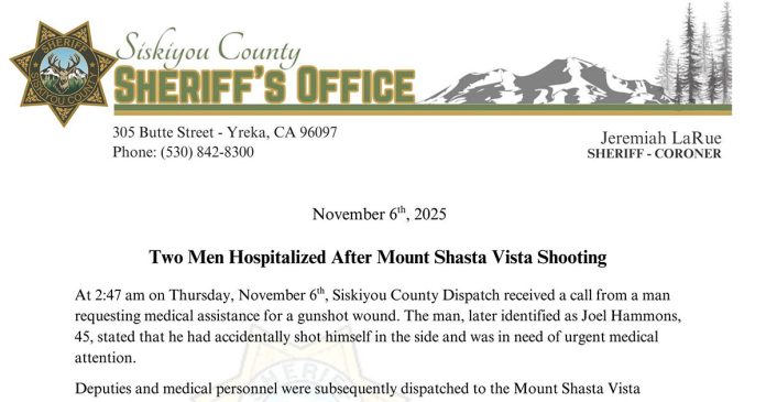 The incident remains under investigation. The Siskiyou County Sheriff’s Office is urging anyone with additional information to come forward by calling (530) 841-2900 or submitting an online report.