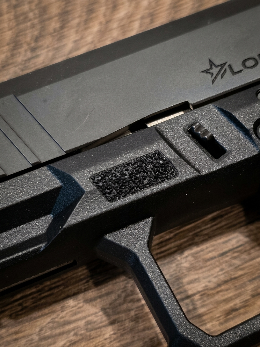 In a professional-grade firearm, ergonomics are the primary “make or break” factor. If a frame’s geometry or texture fails the shooter under the physiological stress of a defensive encounter, the most advanced electronics in the world are irrelevant. The Lodestar LNK9 utilizes a “Compact Crossover” design, a configuration that has gained significant traction in duty circles. By pairing a 4.02-inch compact slide with a full-size frame, Lodestar offers a platform that is easy to conceal and fast to track, yet provides the surface area and 17-round capacity required for a proper firing grip and recoil mitigation.