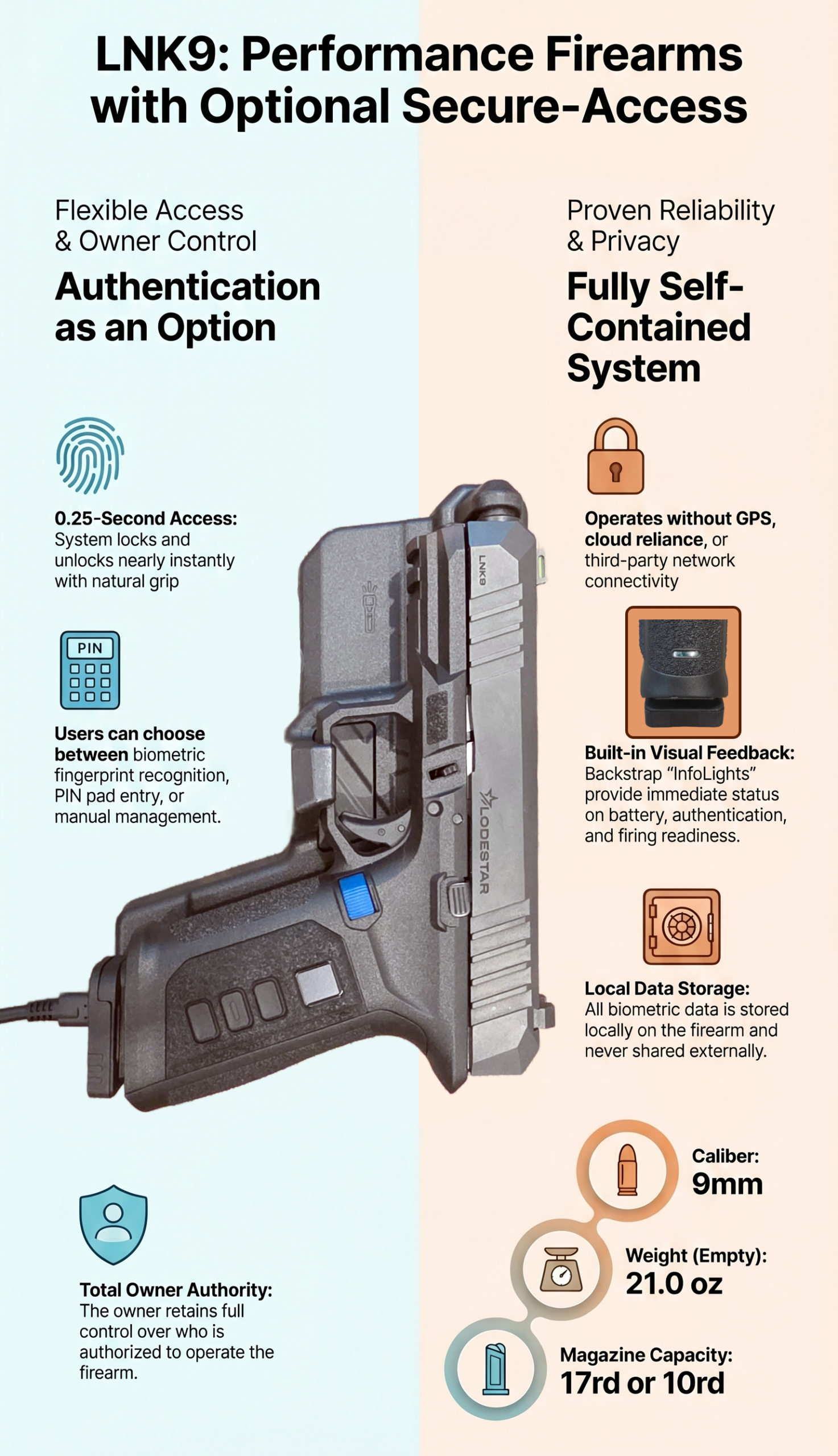 For the investigative journalist and the defensive shooter alike, data privacy is a non-negotiable aspect of “Owner Authority.” The market has a long memory of rejected “cloud-connected” systems that introduced the risk of tracking or remote disabling. Lodestar has engineered the Lodestar LNK9 to be a closed, self-contained ecosystem.