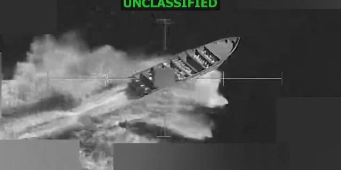 Joint Task Force Southern Spear carried out a lethal kinetic strike on a vessel operated by a designated terrorist organization in international waters, killing three suspected traffickers, U.S. Southern Command said. (Video: U.S. Southern Command/X)